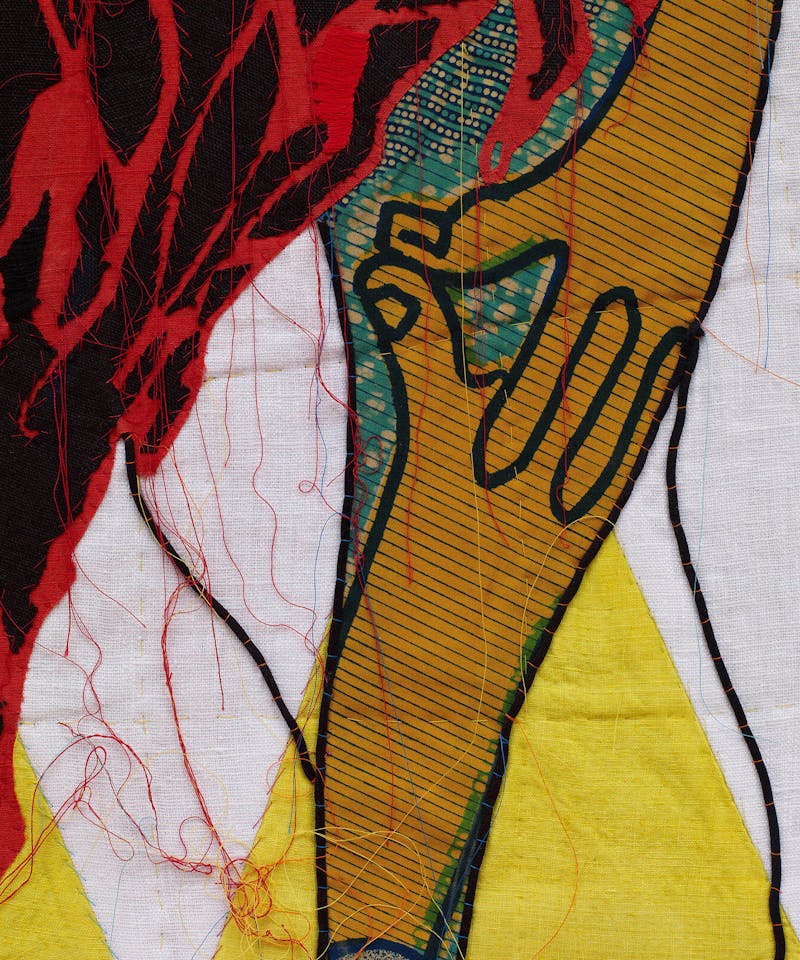 Patchwork, appliqué, embroidery and Dutch wax printed cotton textile